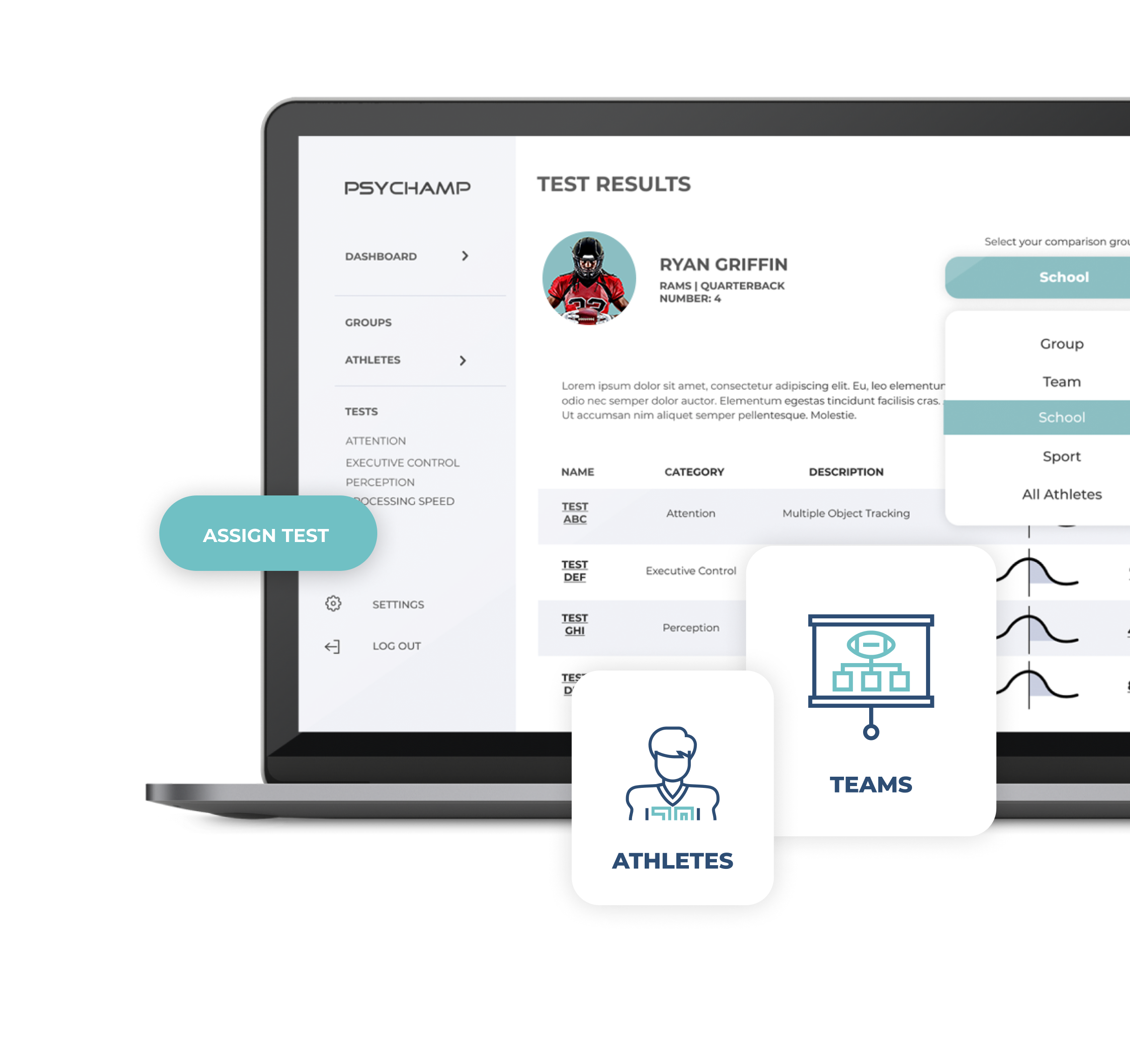 Compare performance and cognitive abilities across athletes and teams to understand which specific abilities make your top performers great.